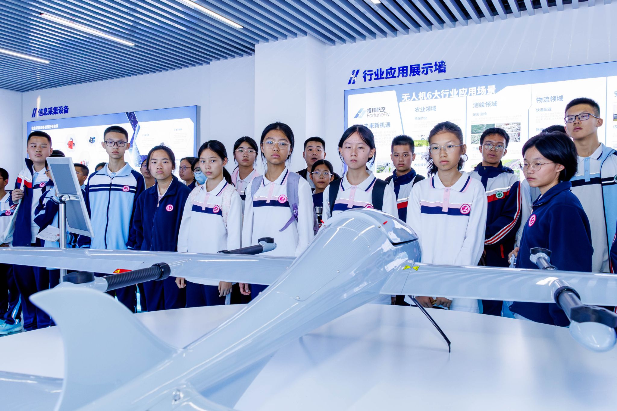 在无人机实训室,技术人员结合行业级设备与模拟器,从 “民生应用 + 国防价值” 的双重视角,详细介绍无人机在国土测绘、应急救援等领域的应用,特别是在世界局部战争中巨大战果,助力学生深刻理解科技改变未来、科技改变战争。