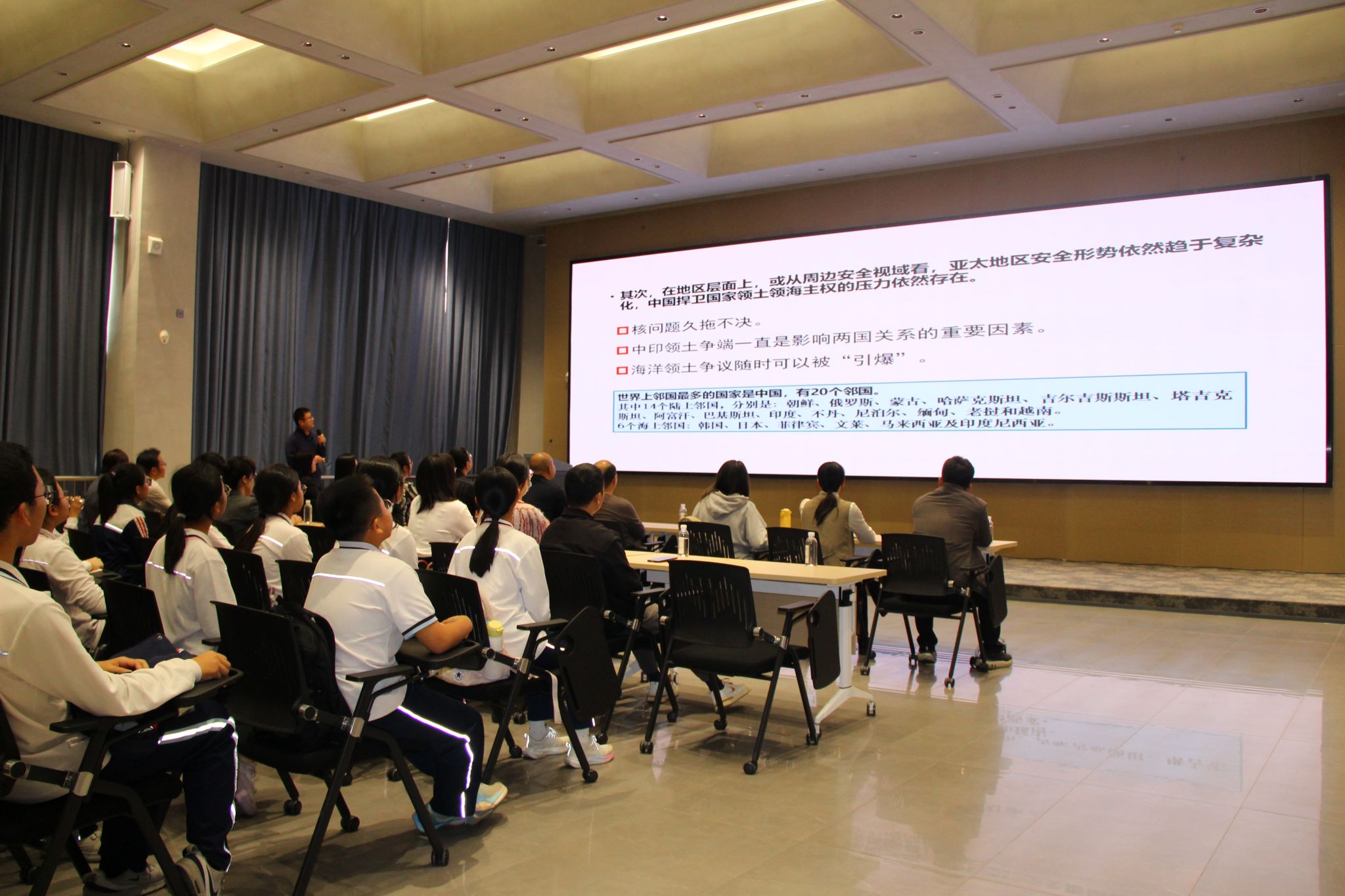 思政专题讲座环节,思政老师以嘉庚精神为核心,讲解 “科技救国”新蕴意、当代青年科研工作者报国的新实践,增强学生国家安全意识与爱国情怀。